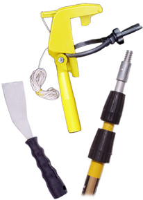 The Angled Scraper is perfect for removing mud dauber nests, as well as, wasp and hornet nests. The 3-inch blade is made of heavy-duty steel integrated with a plastic handle. Use by hand or on the end of an extension pole.